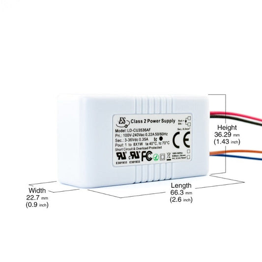 ES LD-CU3536AF Non-Dimmable Constant Current LED Driver, 350mA 3-36V 1-8W max