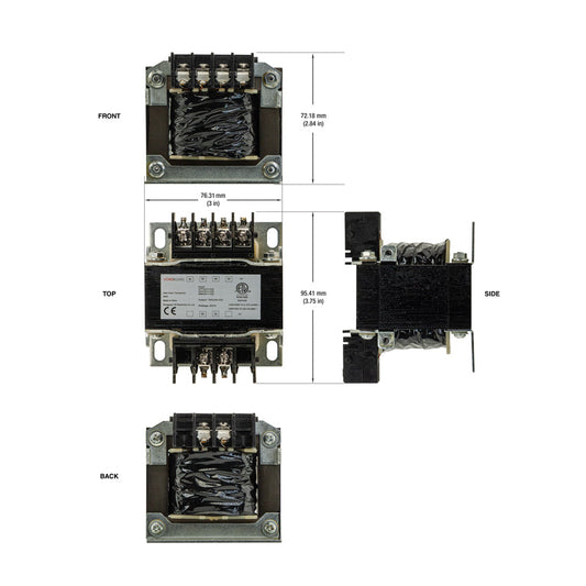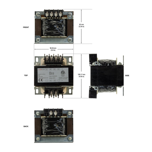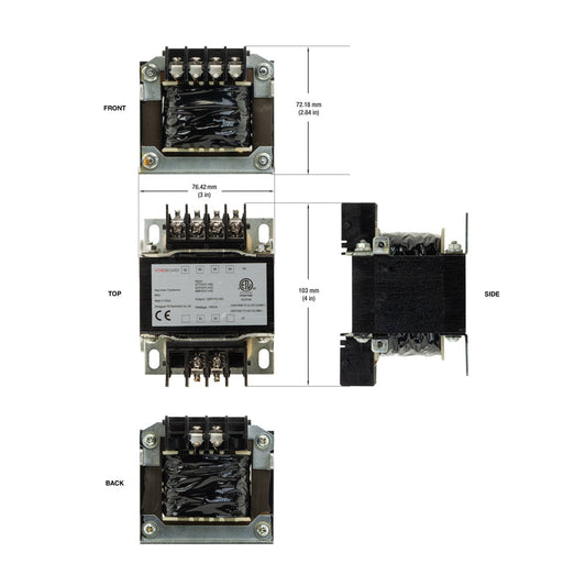 Step-Down Transformer 277V, 347V, 488V to 120V 100W