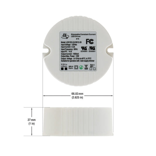 ES LD012D-CA10012-26 Constant Current LED Driver, 1000mA 8-12V 12W
