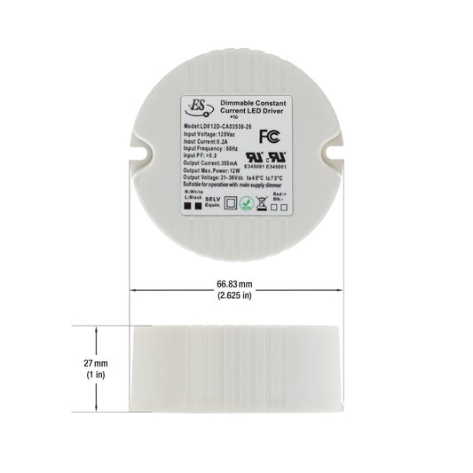 ES LD012D-CA03536-26 Constant Current LED Driver, 350mA 21-36V 12W max