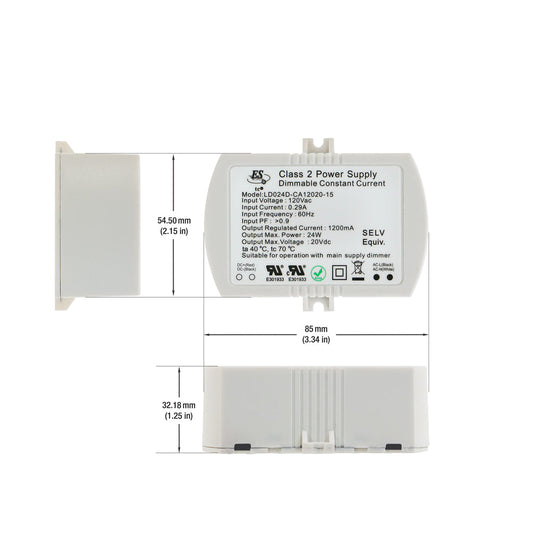 ES LD024D-CA12020-15 Constant Current LED Driver, 1200mA 20V 24W