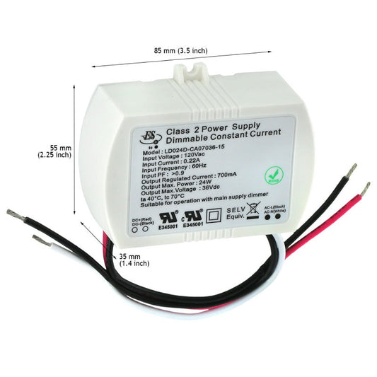 ES LD024D-CA07036-15 Constant Current LED Driver, 700mA 36V 24W