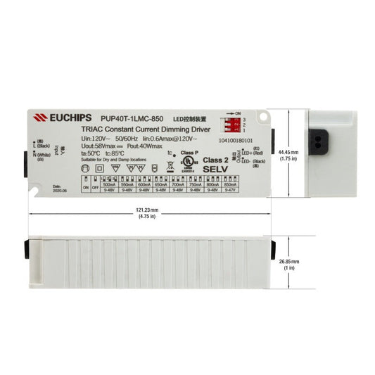 Selectable Constant Current 40W LED Driver Triac Dim PUP40T-1LMC-850 , 120V 500 to 850MA