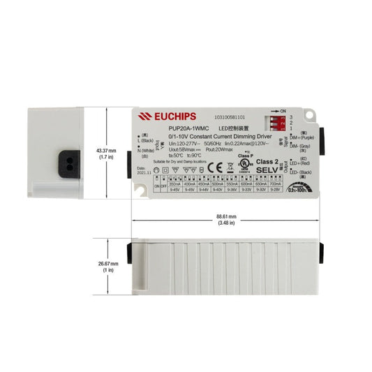 Selectable Constant Current 10W LED Driver 0-10V Dim PUP10A-1WMC-350 , 120VAC-277VAC 120 to 350mA