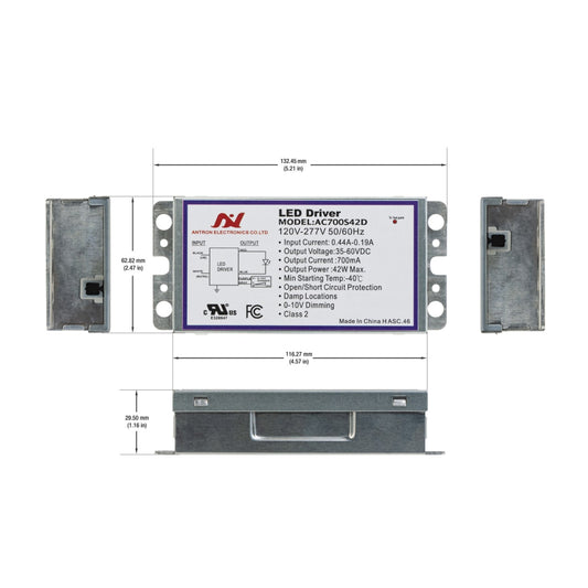 Antron Constant Current LED Driver AC700S42D, 0-10V Dimming 700mA 35-60V 42W