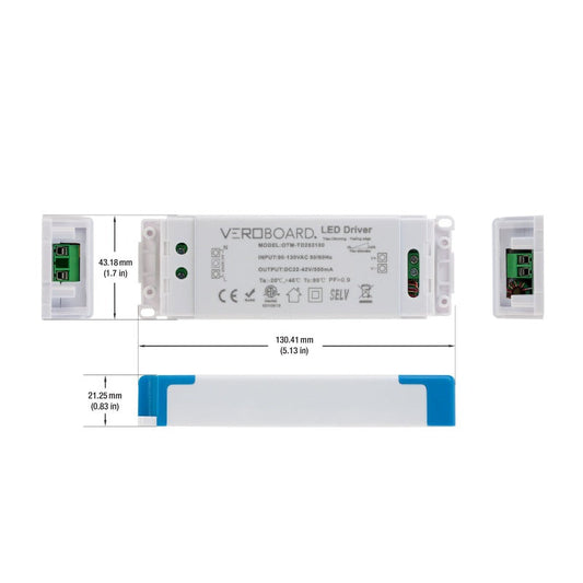 OTM-TD253100-550-20 Constant Current LED Driver, 550mA 22-42V 20W Dimmable