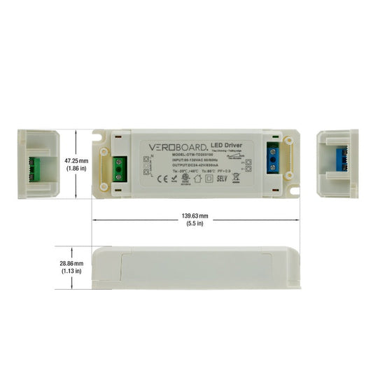 OTM-TD253100-450-20 Constant Current LED Driver, 450mA 27-45V 20W Dimmable