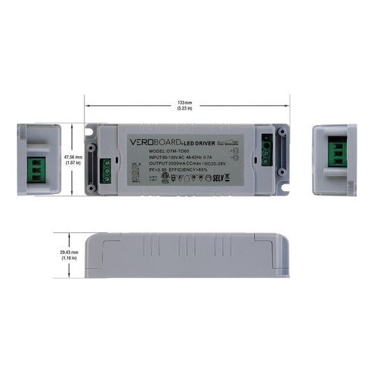 OTM-TD60-2000 Constant Current LED Driver, 2000mA 20-28VDC = LD048H-CU20024-M48E