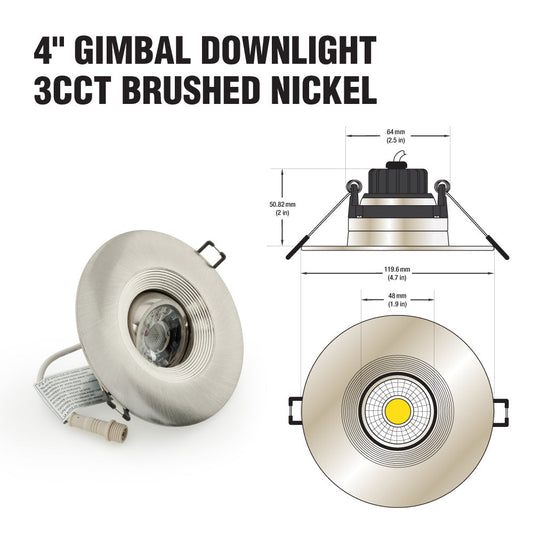 4 inch Round Recessed Light Gimbal with Selectable Color Temperature (3CCT) 120V 8W Black