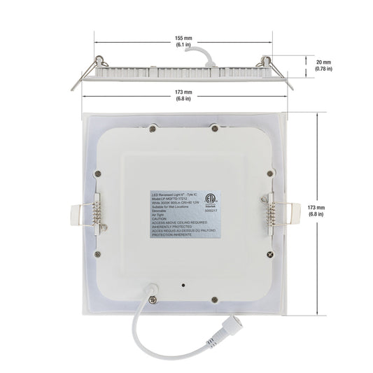 6 inch Square Dimmable Recessed LED Panel Light / Downlight / Ceiling Light LP-ULFTD-17512 120V 12W 5000K(Daylight)