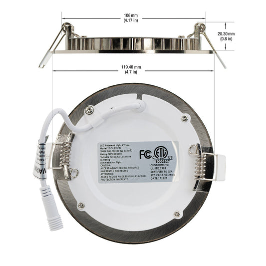 4 inch Flat Dimmable Recessed LED Panel Light, 120V 9W 3000K Brushed Nickel