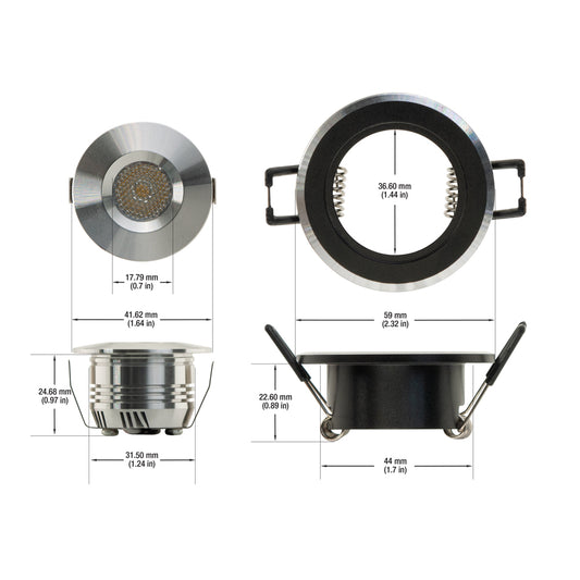RD24-3W-30K 1.5 inch Dimmable Round Downlights/ Ceiling lights, 12V 3W 3000K(Warm White), White, Black, Brushed Nickel