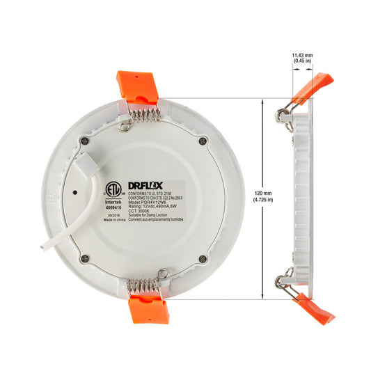 4 inch Dimmable LED Round Panel Downlights/ Ceiling Lights PDR4V12W6, 12V 6W 3000K(Warm White)