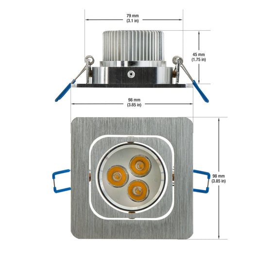 2.5 inch Dimmable Square Downlights/ Ceiling Lights PDS2V12W3, 12V 3W 3000K(Warm White)