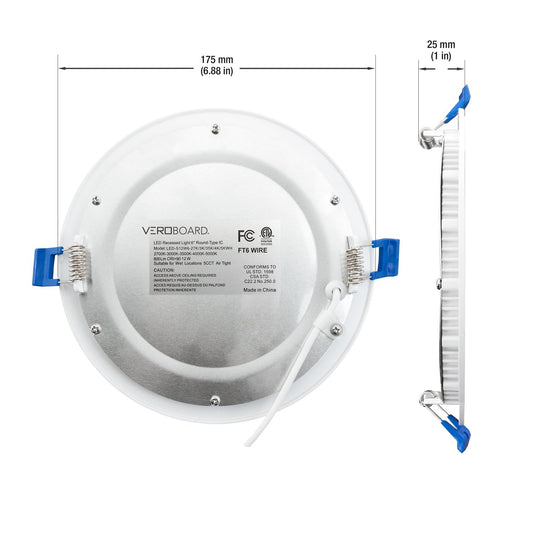 6 inch Dimmable flat Round Ultrathin Recessed Downlights/ Ceiling Light LED-6-S12W-1224V-5CCTWH, 12V~36V 12W 5CCT(2.7K, 3K, 3.5K, 4K, 5K)