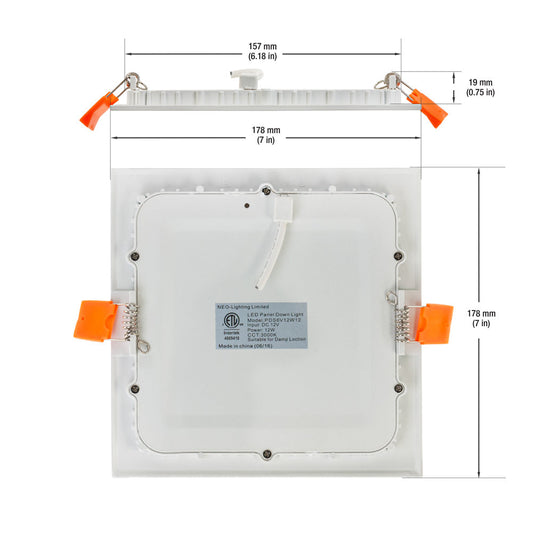 6 inch Dimmable Square LED Downlights/ Ceiling Lights PDS6V12W12, 12V 12W 3000K(Warm White)