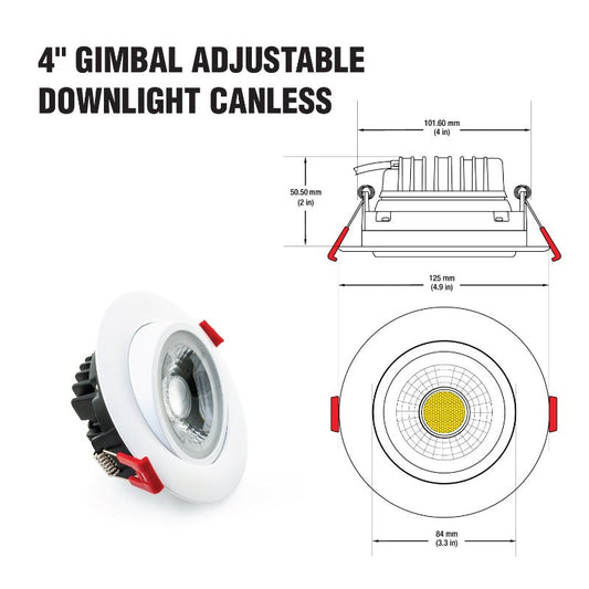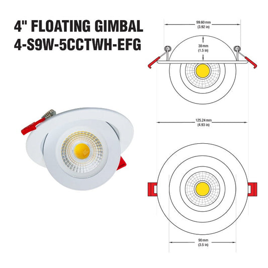 4 inch Dimmable Floating Gimbal Recessed LED Downlight / Ceiling Light LED-4-S9W-1224V-5CCTWH-EFG, 12V~36V 9W 5CCT