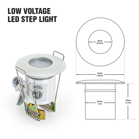 P105-SN-3000 Round Dimmable LED Step Light, 12V 0.6W 3000K(Warm White) Silver Grey