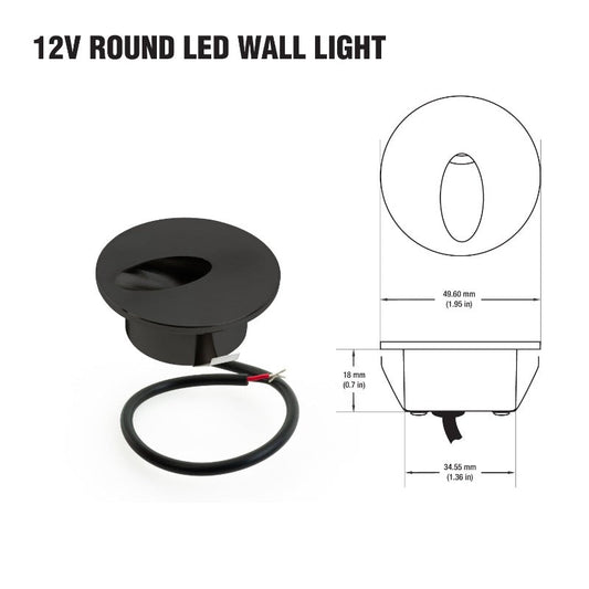 P105-BK-3000 Round Dimmable LED Step Light, 12V 0.6W 3000K(Warm White) Black