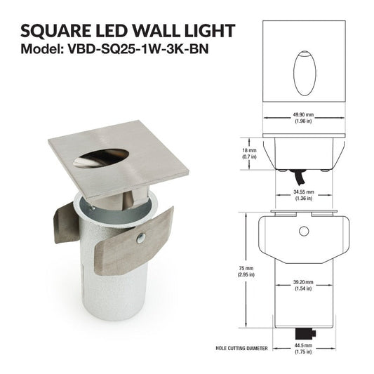 VBD-SQ25-1W-3K-BN Square Dimmable LED Step Light/ Pathway Light, 12V 1W 3000K(Warm White)