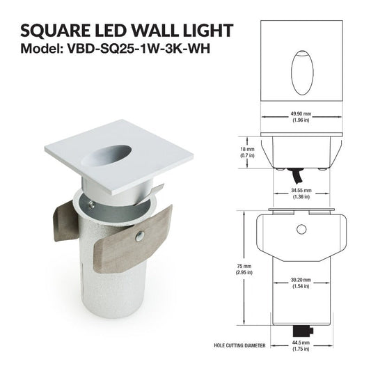 VBD-SQ25-1W-3K-WH Square Dimmable LED Step Light/ Pathway Light, 12V 1W 3000K(Warm White)