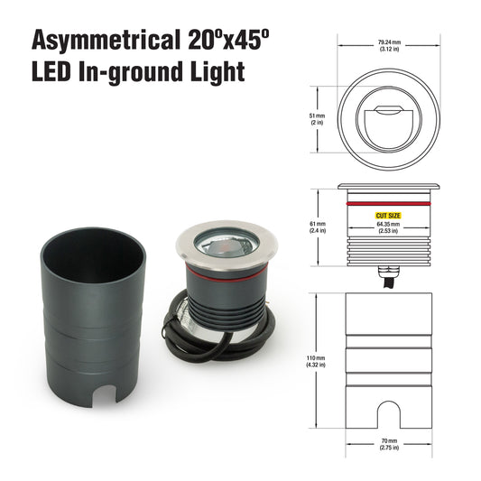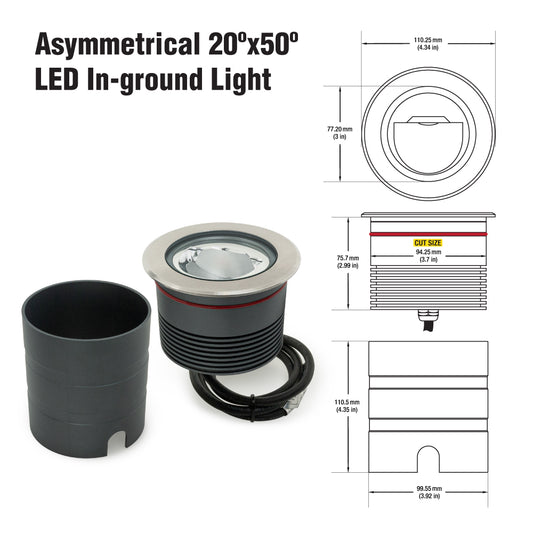Outdoor Round Recessed Inground Light, 24V 15W 3000K Asymmetrical Beam angle
