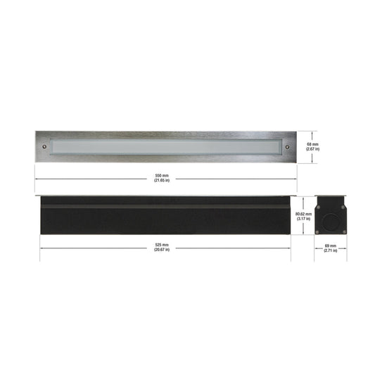 20-inch Outdoor Linear Recessed LED Inground Light 24V 13.2W 3000K, VBD-I-LIN-2F-30-24V-3K
