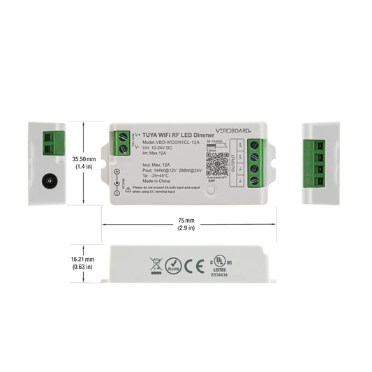 VBD-WCON1CL-12A-Dimmer RF LED Light Dimmer Receiver 12-24V DC 2.4G Tuya App