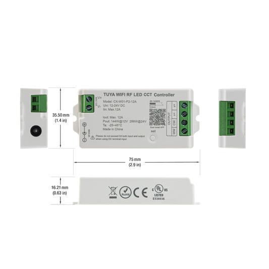 CX-W01-P2-12A-CCT RF LED Light Dim & CCT Receiver 12-24V DC 2.4G Tuya App