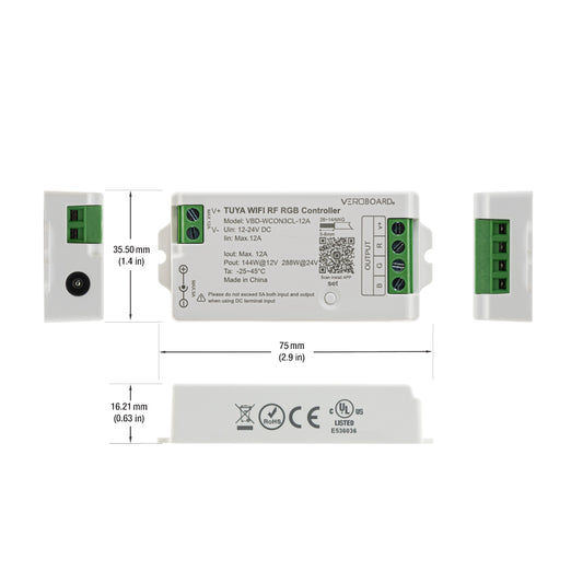 VBD-WCON3CL-12A-RGB RF LED Light RGB Receiver 12-24V DC 2.4G Tuya App