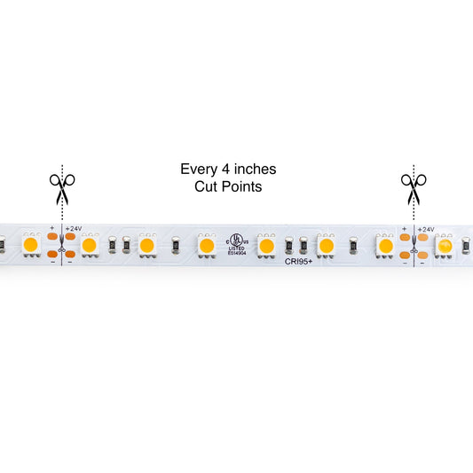 5M(16.4ft) Indoor LED Strip Light 5050, 24V 4.5(w/ft) 360-402(Lm/ft) 60(LEDs/m) CCT (4K)