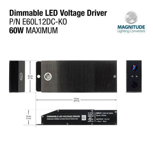 Magnitude Electronic E60L12DC-KO Dimmable Constant Voltage LED Driver, 12V 60W