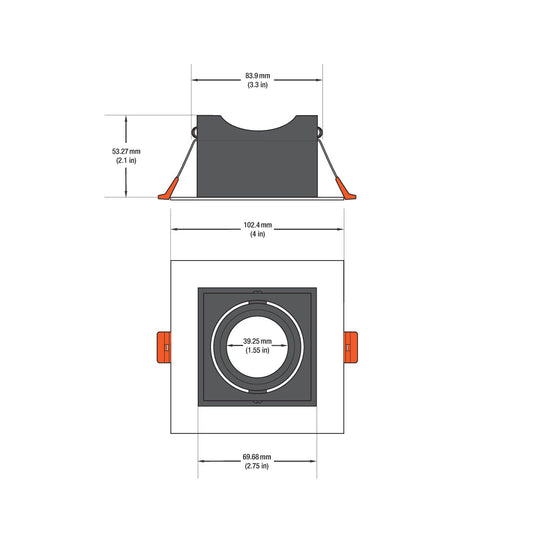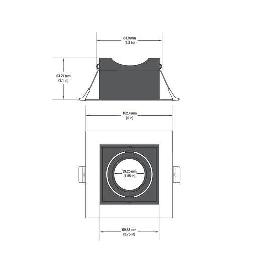 VBD-MTR-9W 12V Low Voltage IC Rated Downlight LED Light Fixture, 2.5 inch Square White