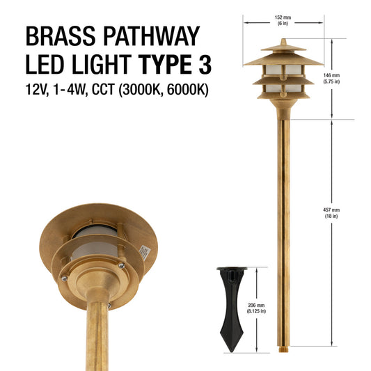 Brass Outdoor Pathway LED Light Type 3 CCT(3000K, 6000K)