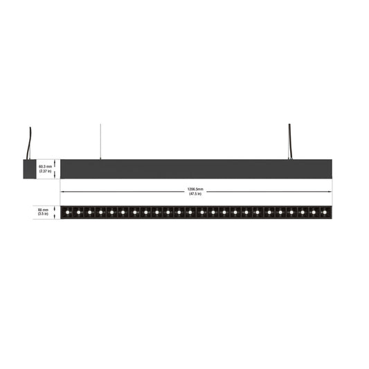 LED Low Glare Linear Pendant Light 4ft, 100-277V 38W 3000K(Warm White) Black