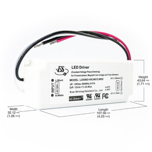 ES LD040D-VA34012-M30 Triac Dimmable Constant Voltage LED Driver, 12V 3.4A 40W