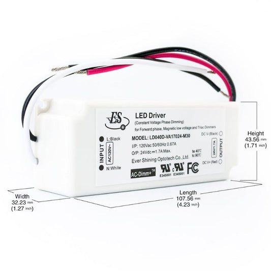 ES LD040D-VA17024-M30 Triac Dimmable Constant Voltage LED Driver, 24V 1.7A 40W