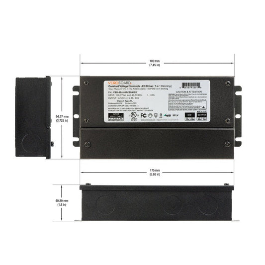 VBD-024-060VTD2JV2 Triac/0-10V Dimmable Constant Voltage LED Driver, 24V 60W 100-277V AC