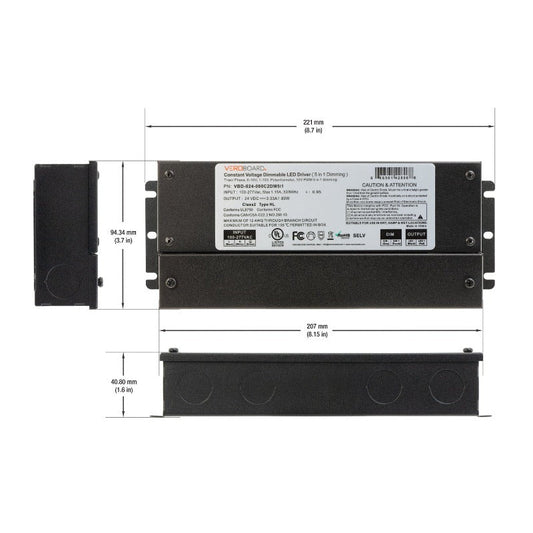 VBD-024-080VTD2JV2 Triac/0-10V Dimmable LED Driver, 24V 80W 100-277V AC