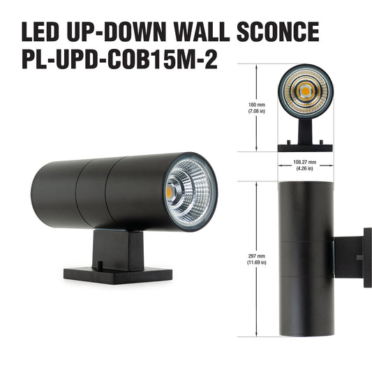 PL-UPD-COB15M-2 Outdoor Wall Sconces light Up Down Cylindrical, 100-277V 30W 3000K(Warm White)