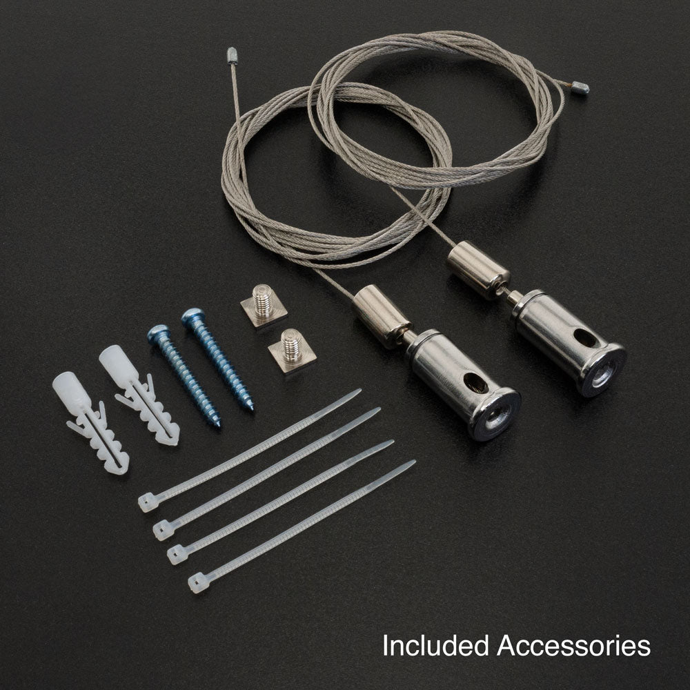 - Comes with 5 feet of adjustable suspension aircraft cables.